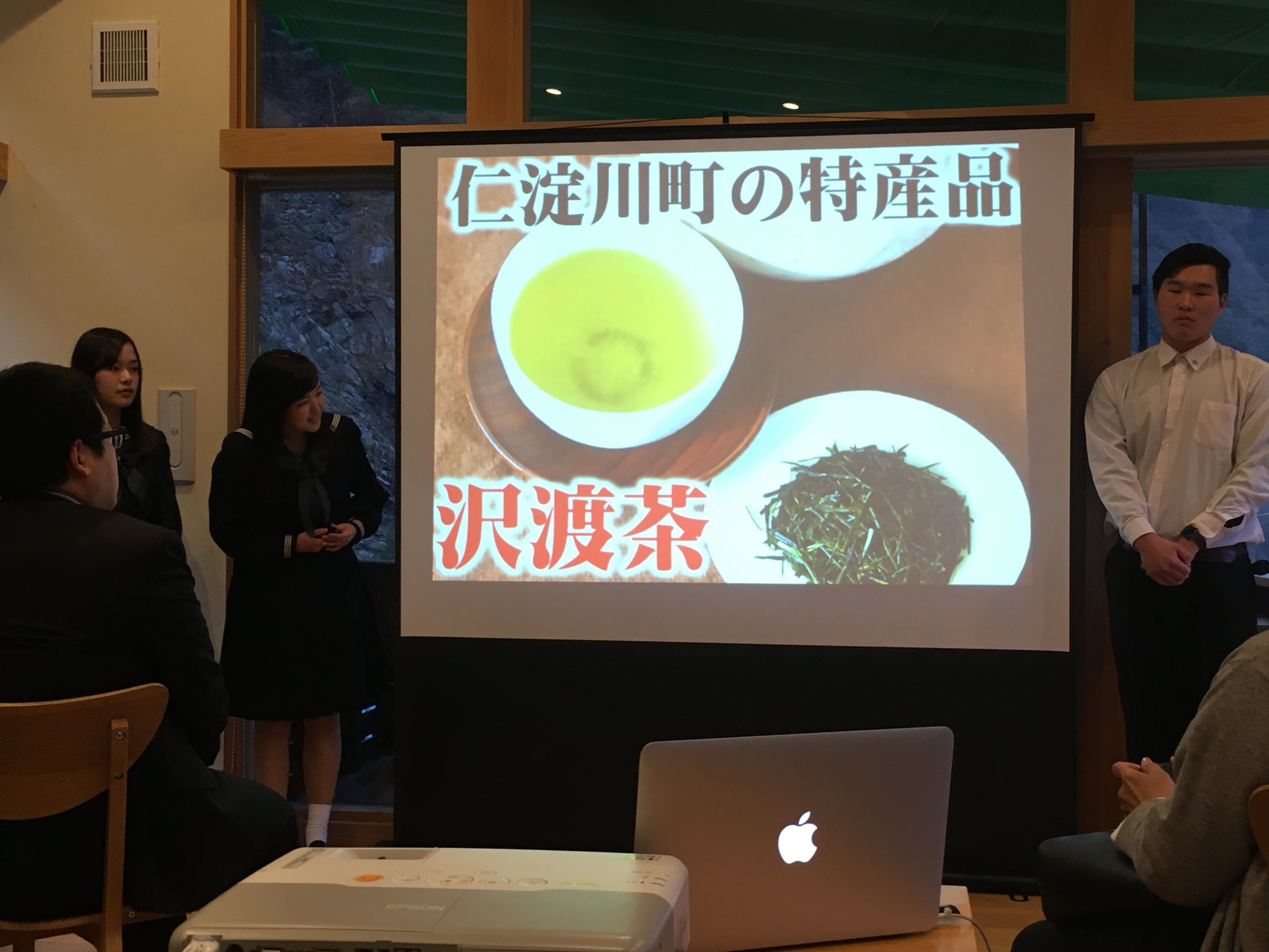 スクリーンの前に立つ卒業生の片岡くんは仁淀川町出身