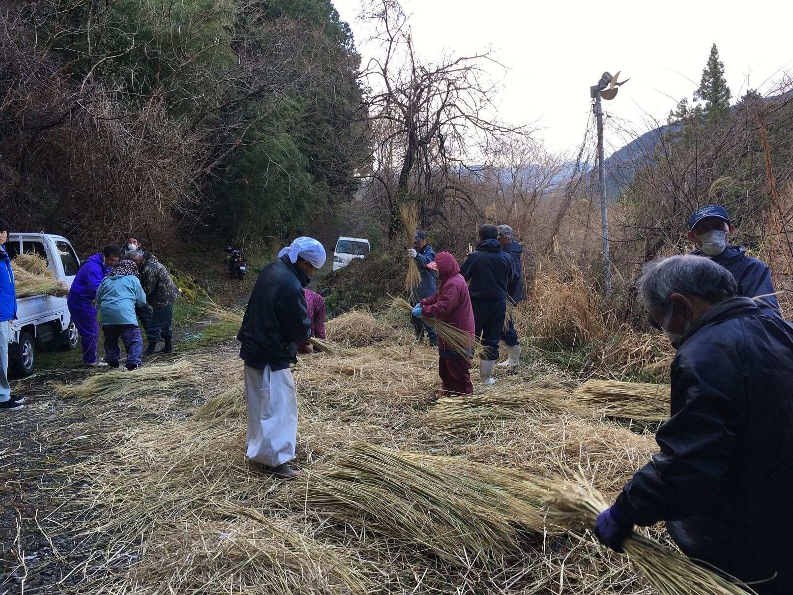太陽が昇ると青空が見えるほどの良い天気になり、毎年作業される広場で行われました