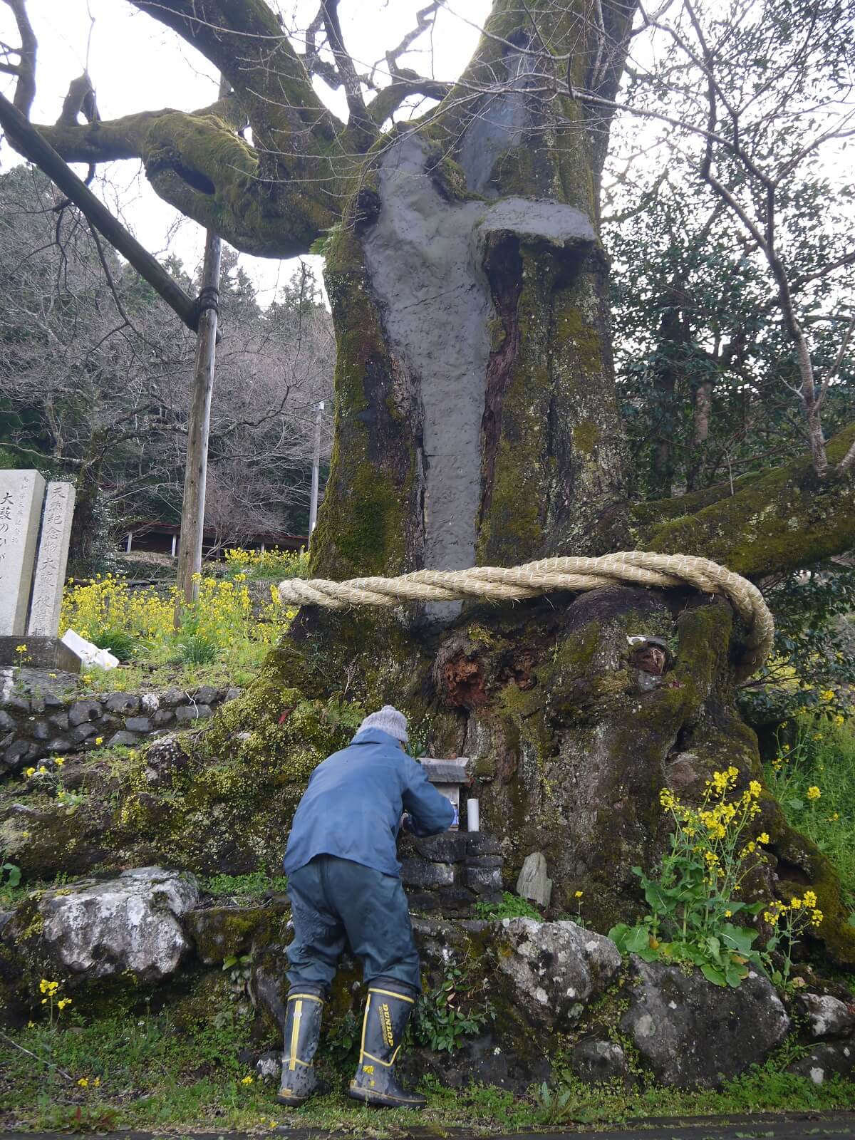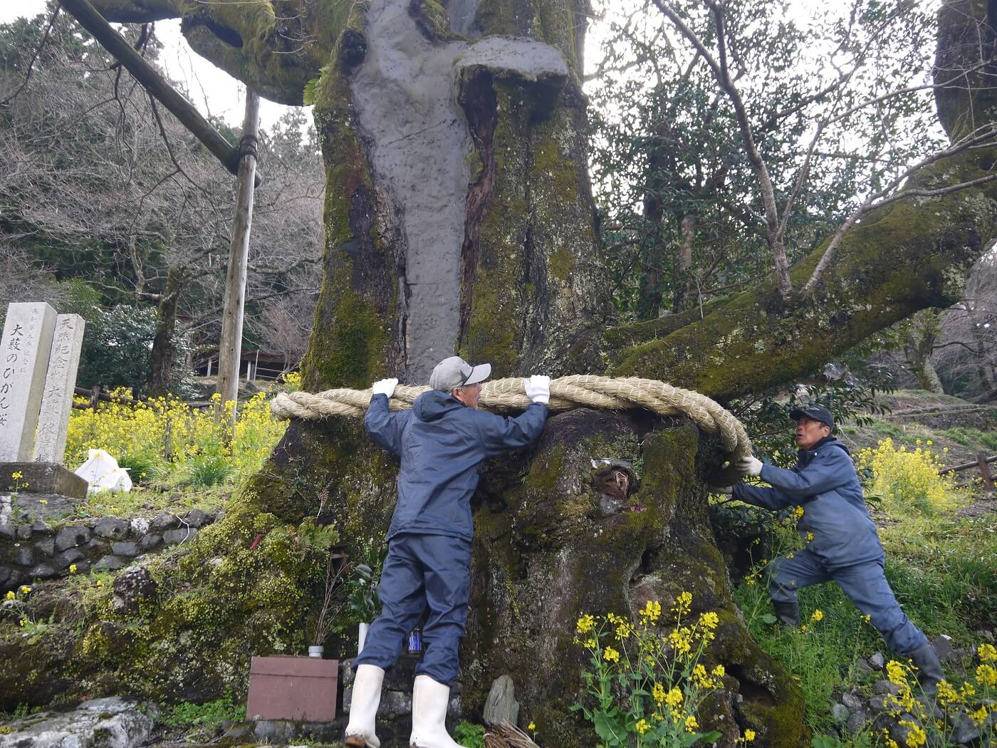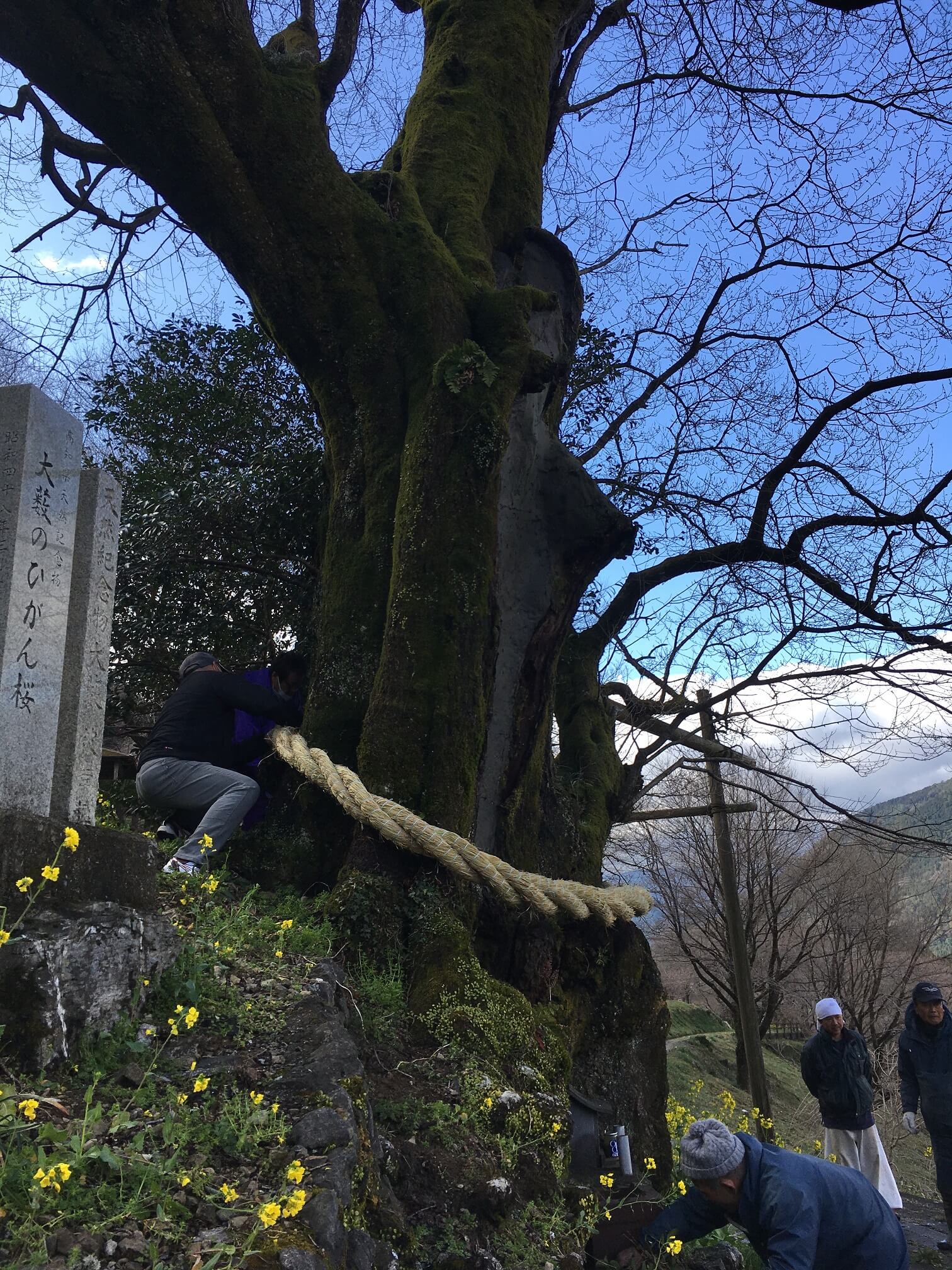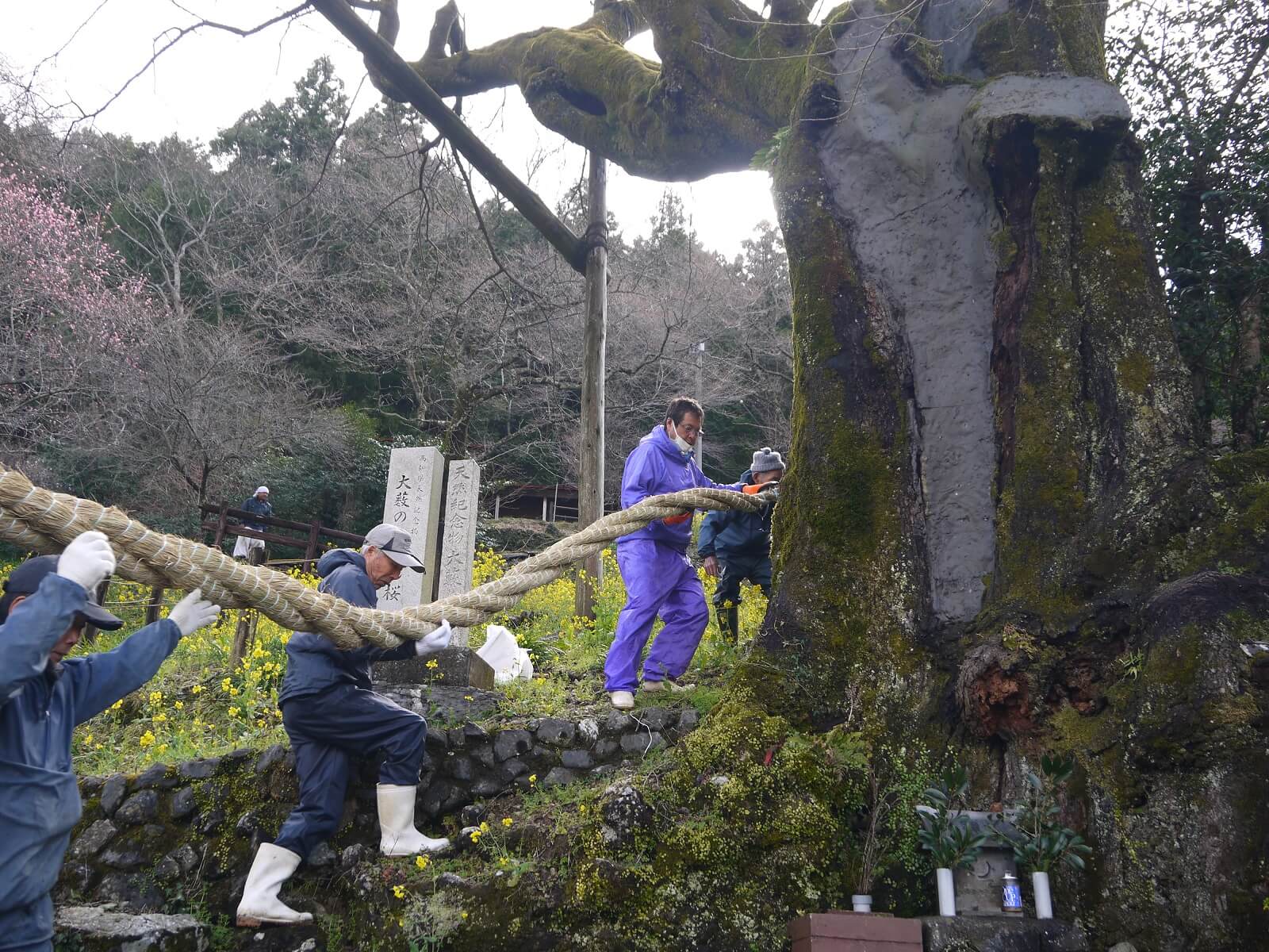 ひょうたん桜の新しいしめ縄づくりが行われていました