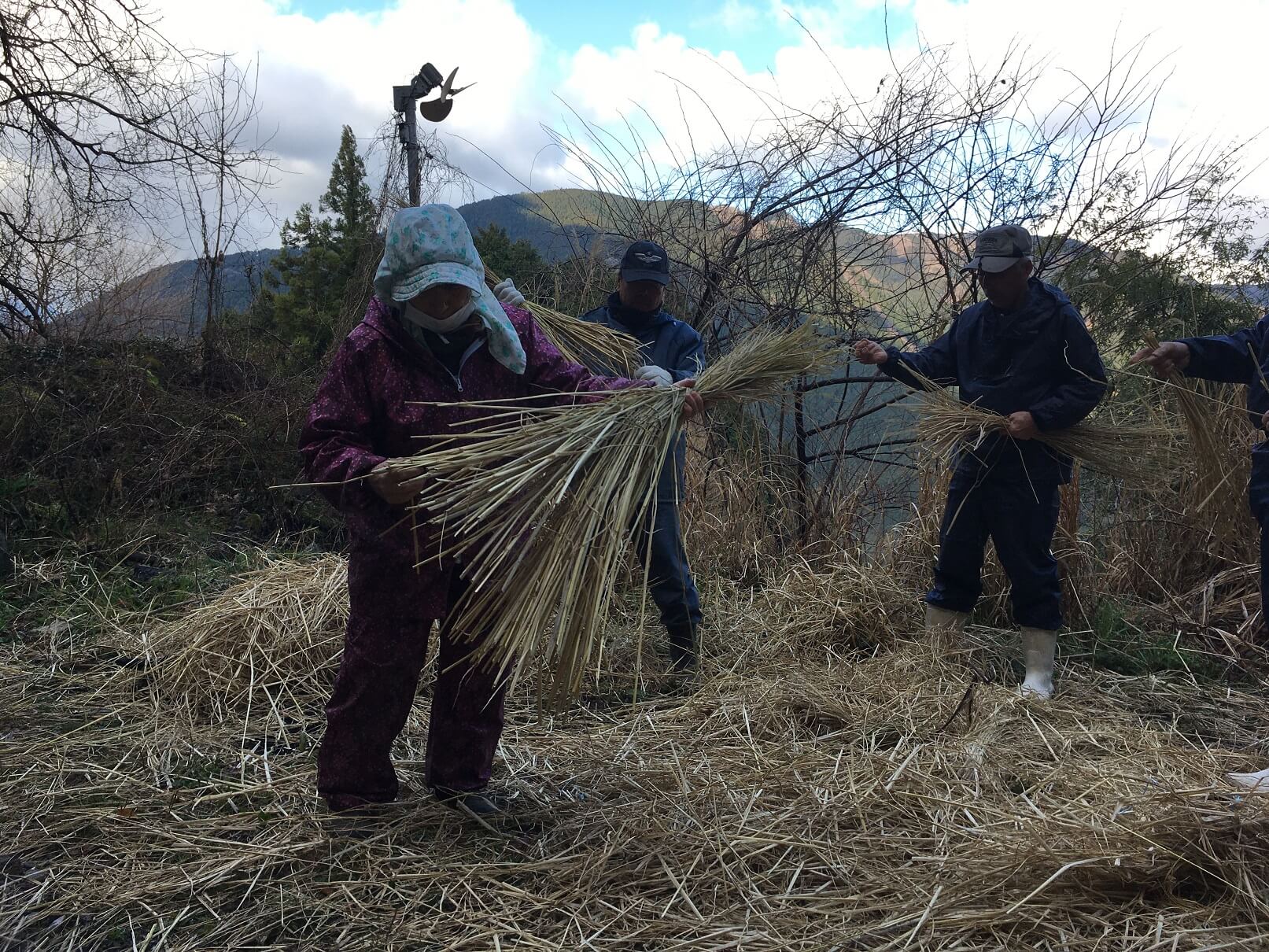 藁は丁寧に揃え、小分けにして準備します
