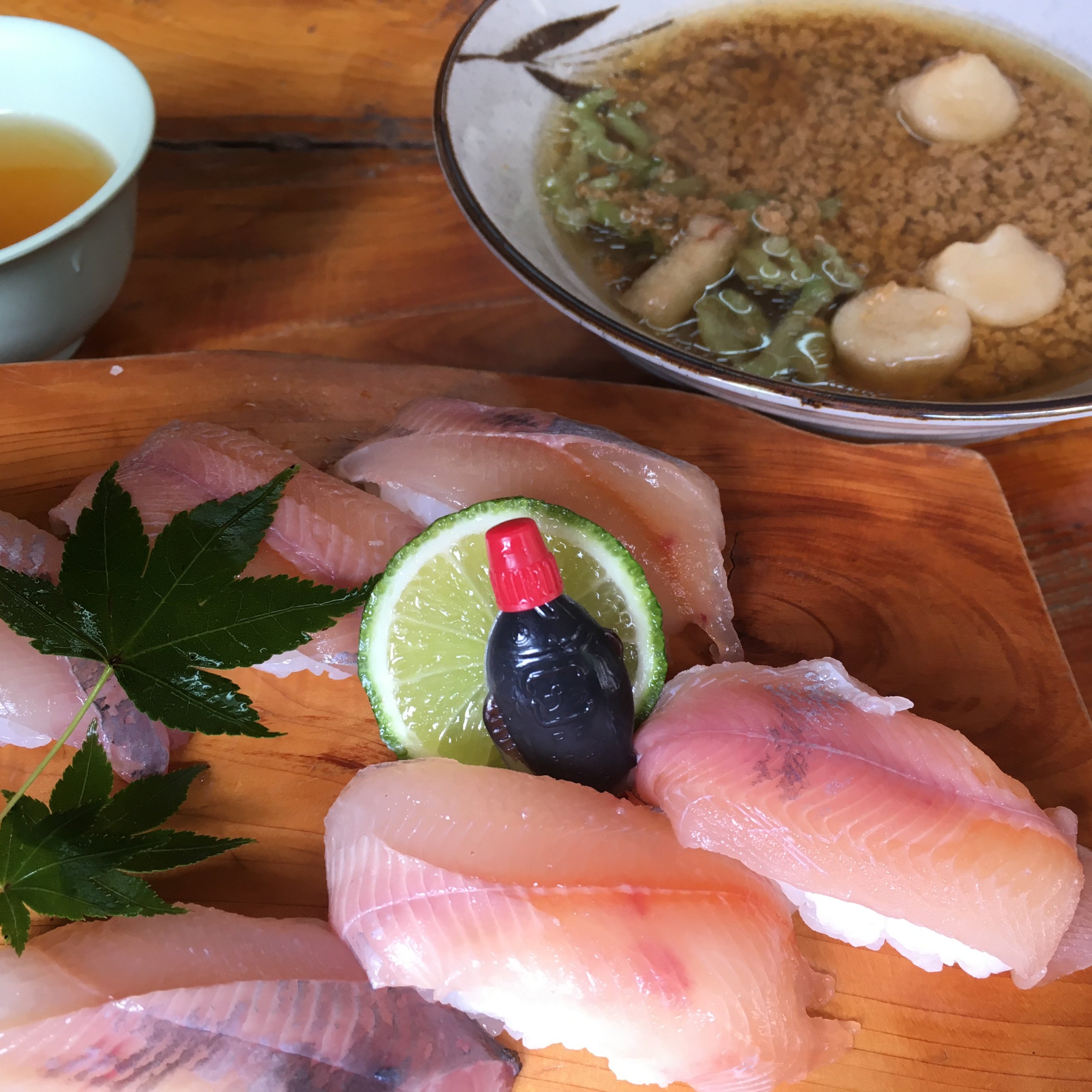 秋になると楽しみなのが、大関さんのツガニ汁とあめごのお寿司