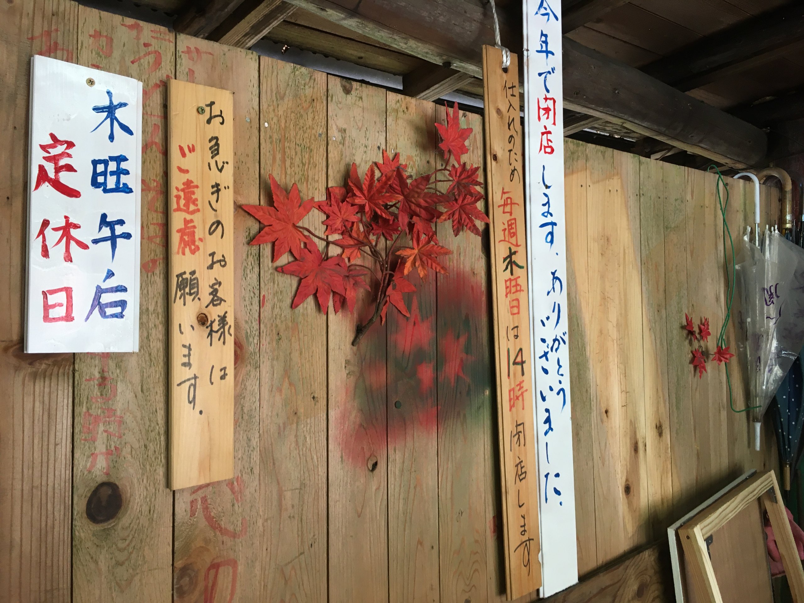 店内のあちこちに掲げている「今年限りで・・・」の立札を見ると寂しくなる