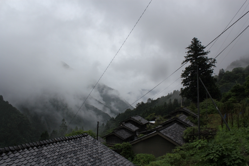 標高700メートルにある椿山地区。目の前の山々には何百年も変わらず山肌から落ちる滝と、眼下に雲が広がります。平家の落人が安徳天皇と共にここに来たと伝えられています。椿山神社には安徳帝、平知盛、平教盛ら7名が大元七社権現として祀られています。
