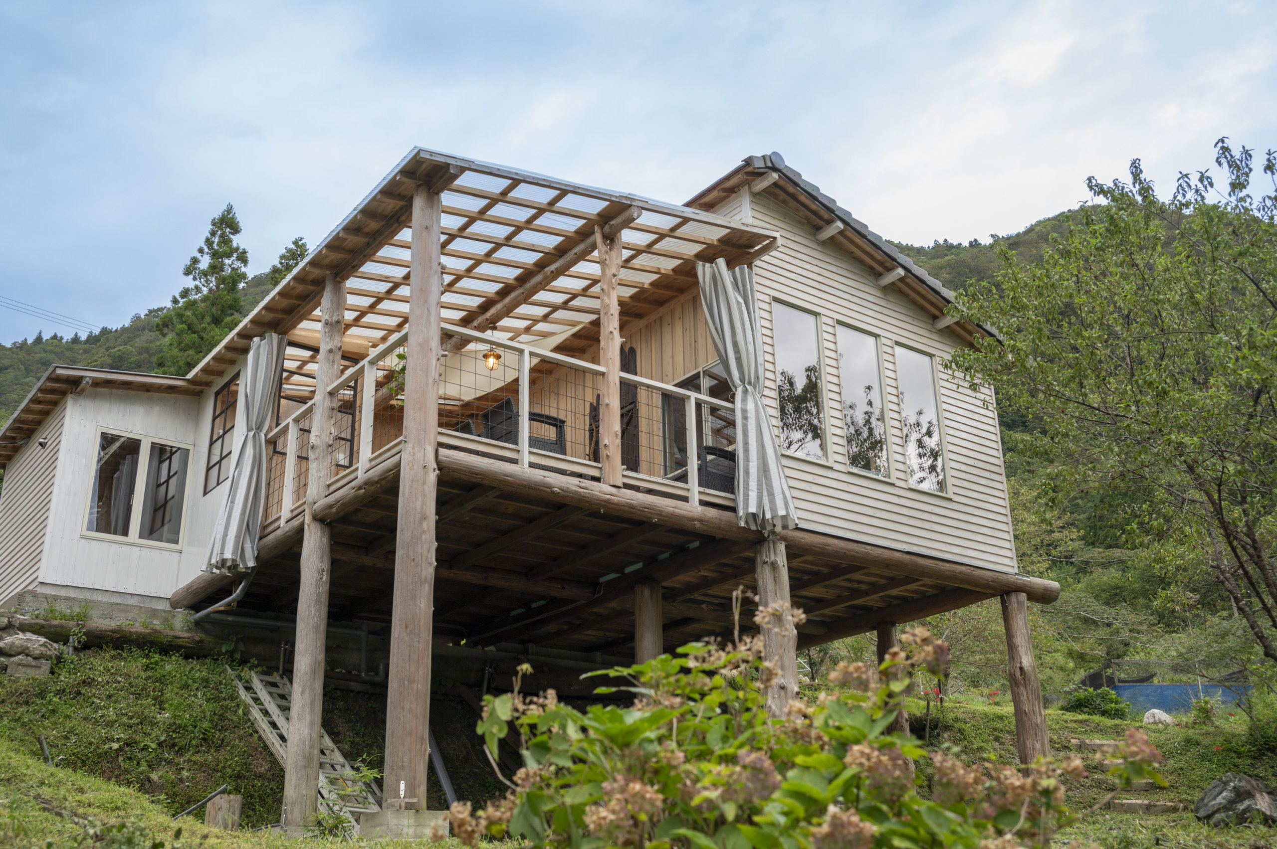 宮崎の河原キャンプ場、池川大橋のたもとからツボイ放牧場へといっきに登った所にあります。高知自慢の土佐あか牛や自家栽培野菜を使った料理を提供したいとの思いで高知市から移住し、宿泊事業を展開しています。この地の自然を活かした宿泊とお食事を提供しています。