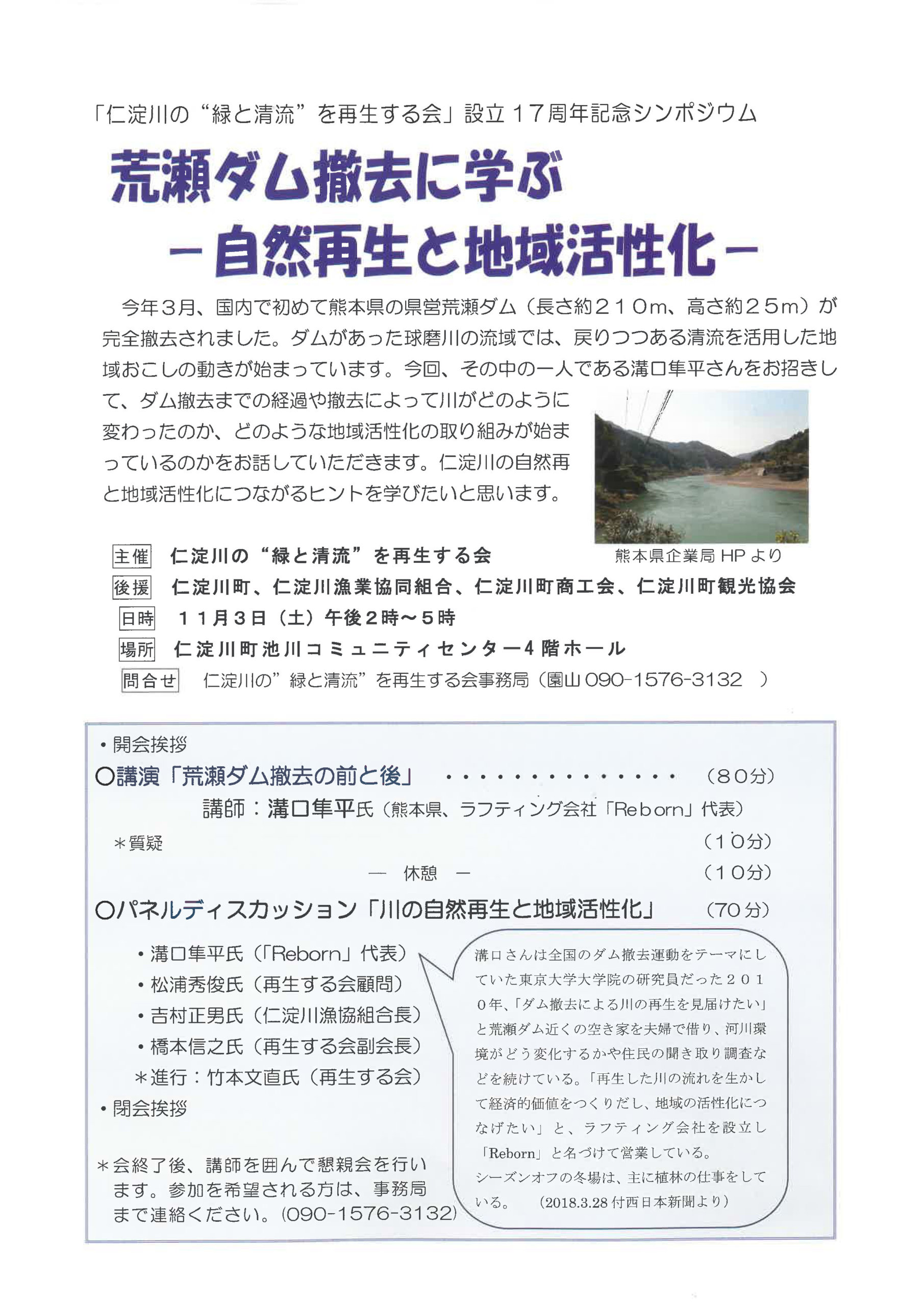 仁淀川の”緑と清流”を再生する会・設立17周年記念シンポジウム