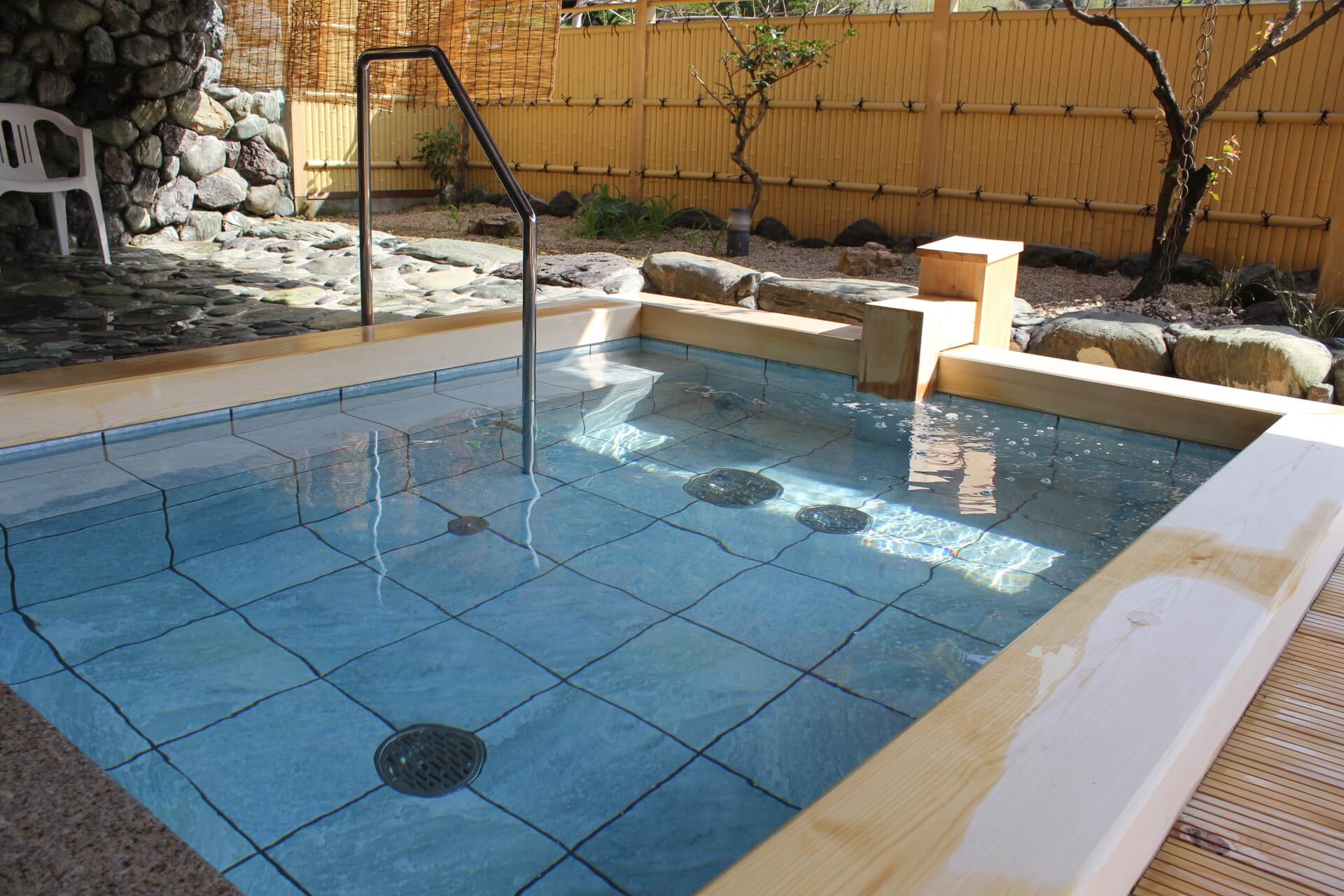 改装された露天風呂を見せていただきにオープンに時間前にお邪魔しました