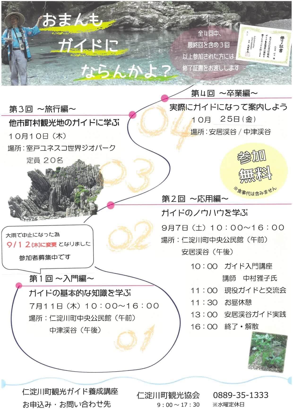 チラシDLはコチラ➡『仁淀川町観光ガイド養成講座チラシ』※修正版