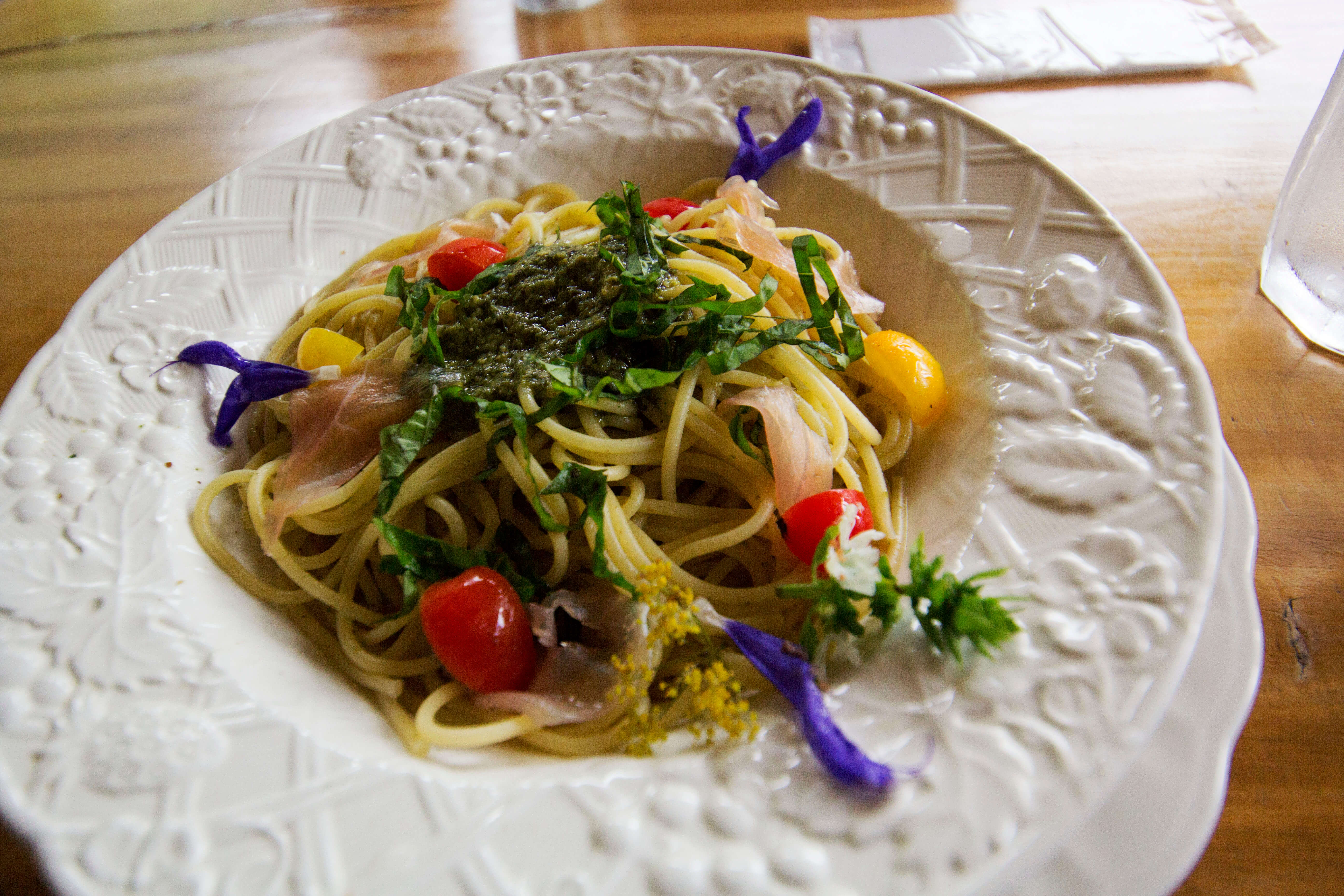 彩り鮮やかなバジルソースたっぷり