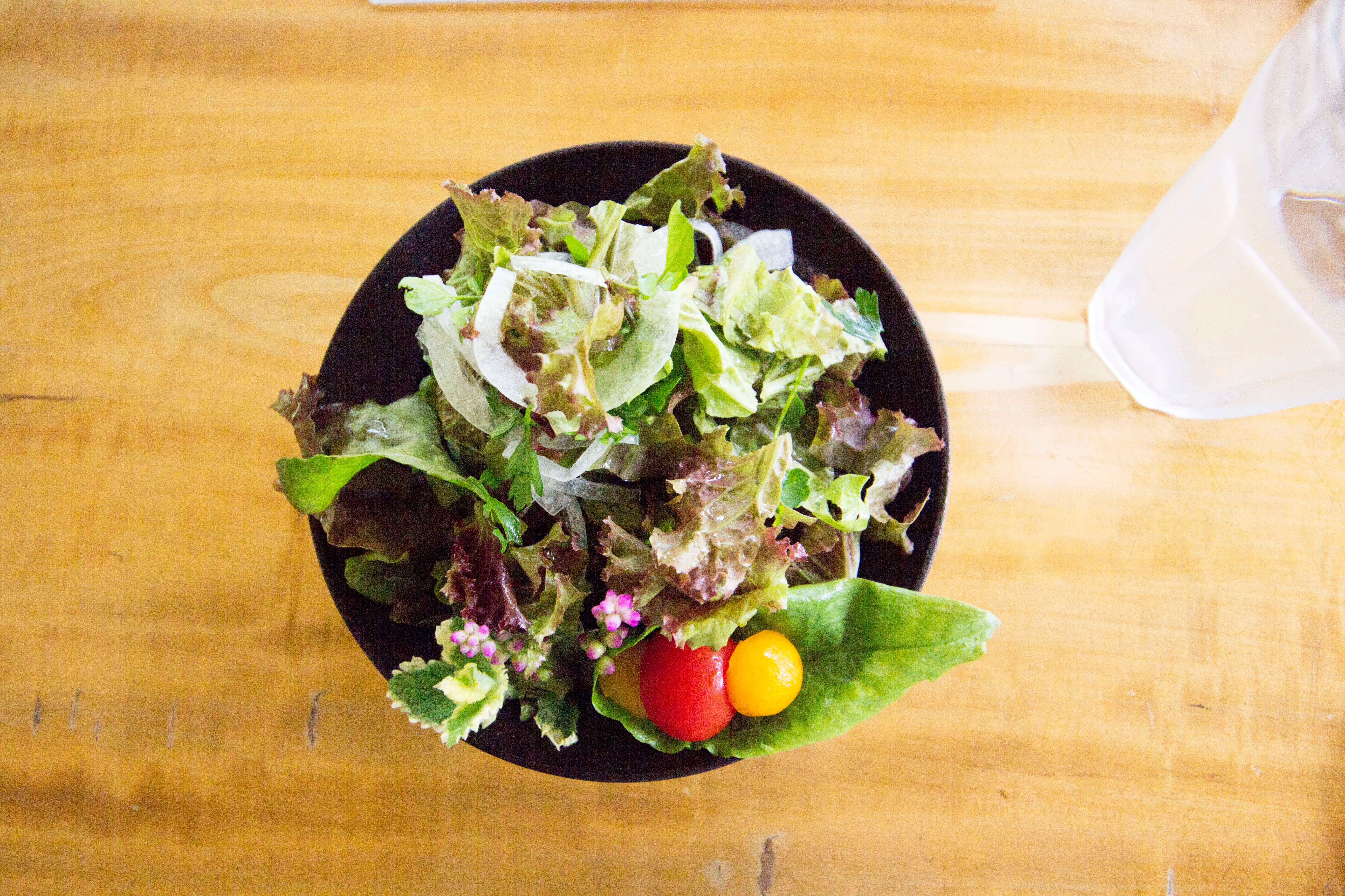 新鮮なお野菜と畑から採ったばかりのハーブのサラダ