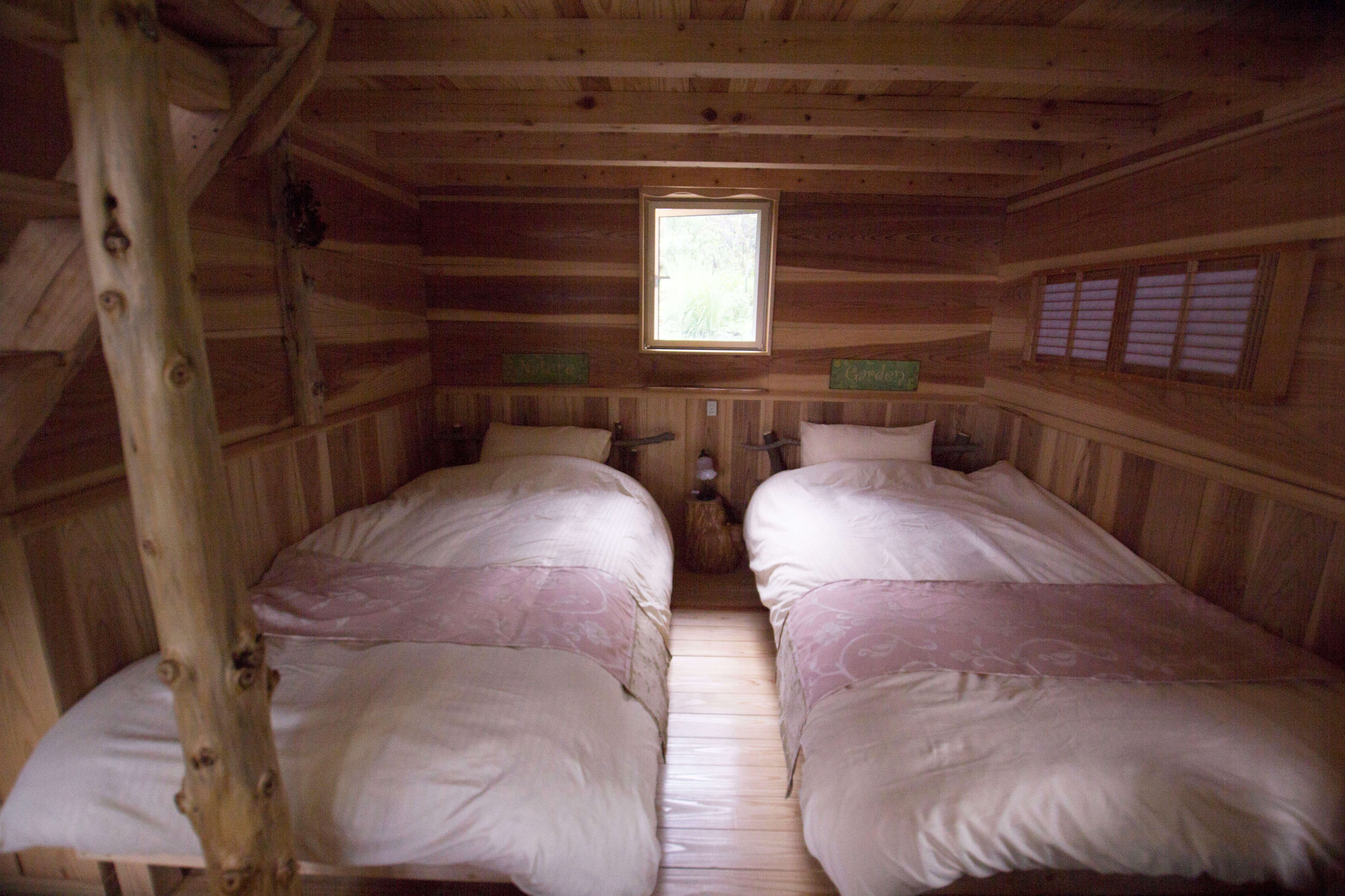 1階にベッドが2台 ロフトにも2台