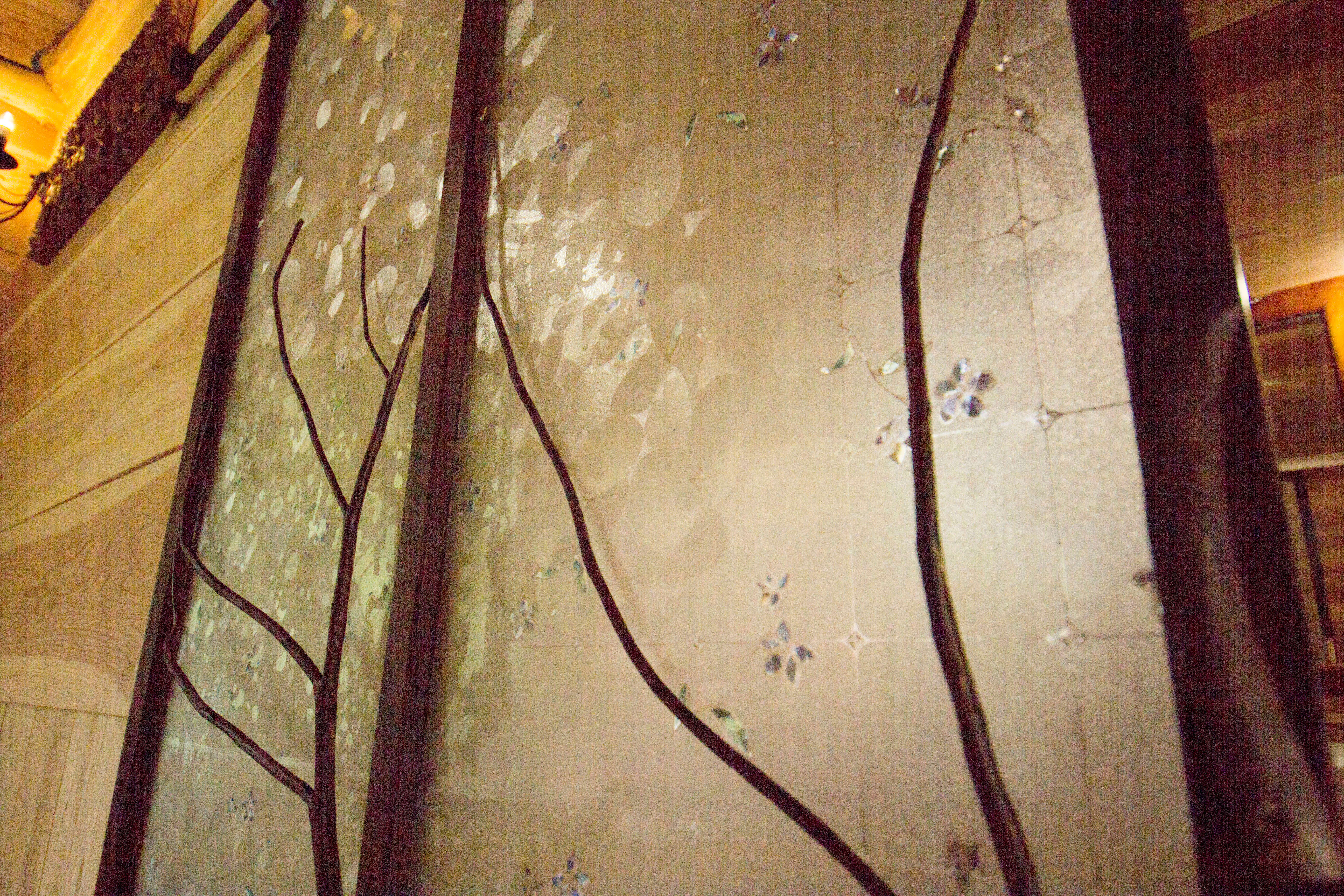 ガラスを保護するためにつけられた木の枝のようなオブジェも素敵です