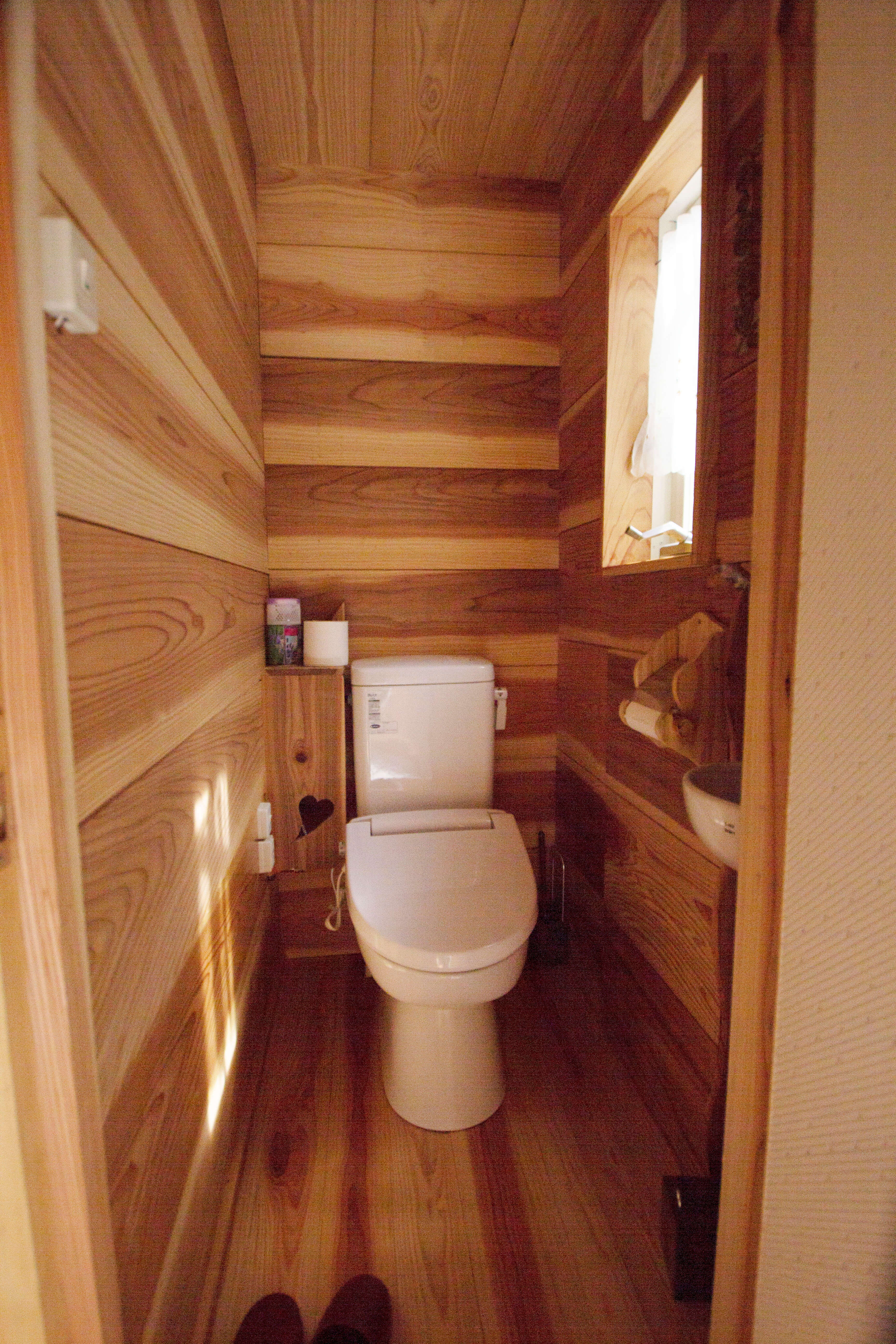 なんと右手の木製トイレットペーパーホルダーも手づくりだそうです( ゚Д゚)スゴイ