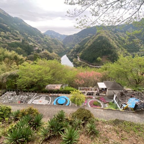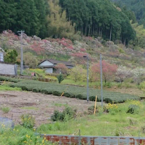 高知方面より国道33号を進み仁淀川町へ入ると一番最初に目にする場所。仁淀川を渡る直前に山の斜面に建つ家々と白やピンクに染まる花桃が目印。寺村隧道と寺村橋の間の道を川手側に入り約2.8km。