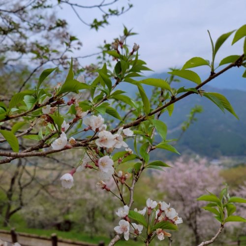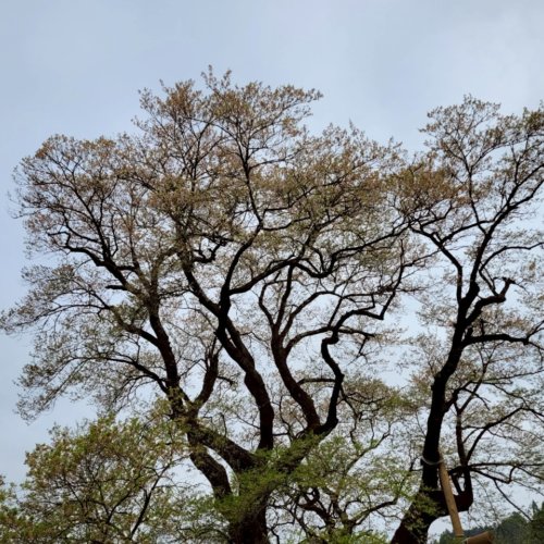 樹齢約200年のエドヒガン(ウバヒガン)桜。土佐の国、別枝村 (現在仁淀川町別枝) 庄屋中越家は佐川領主深尾公の休憩の地とされその場所に現当主の祖父中越信記氏が植裁したものと伝えられています。