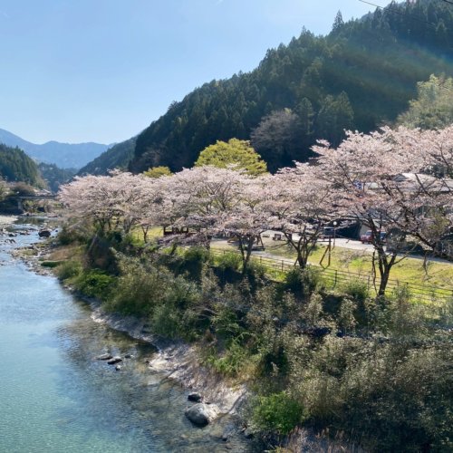 土居川沿いにあるソメイヨシノの桜並木が800m連なります。オートキャンプ場になっている仁淀川町ふれあい公園にあるので夜桜見物にもおすすめ。さくらに包まれて泊まってみませんか?